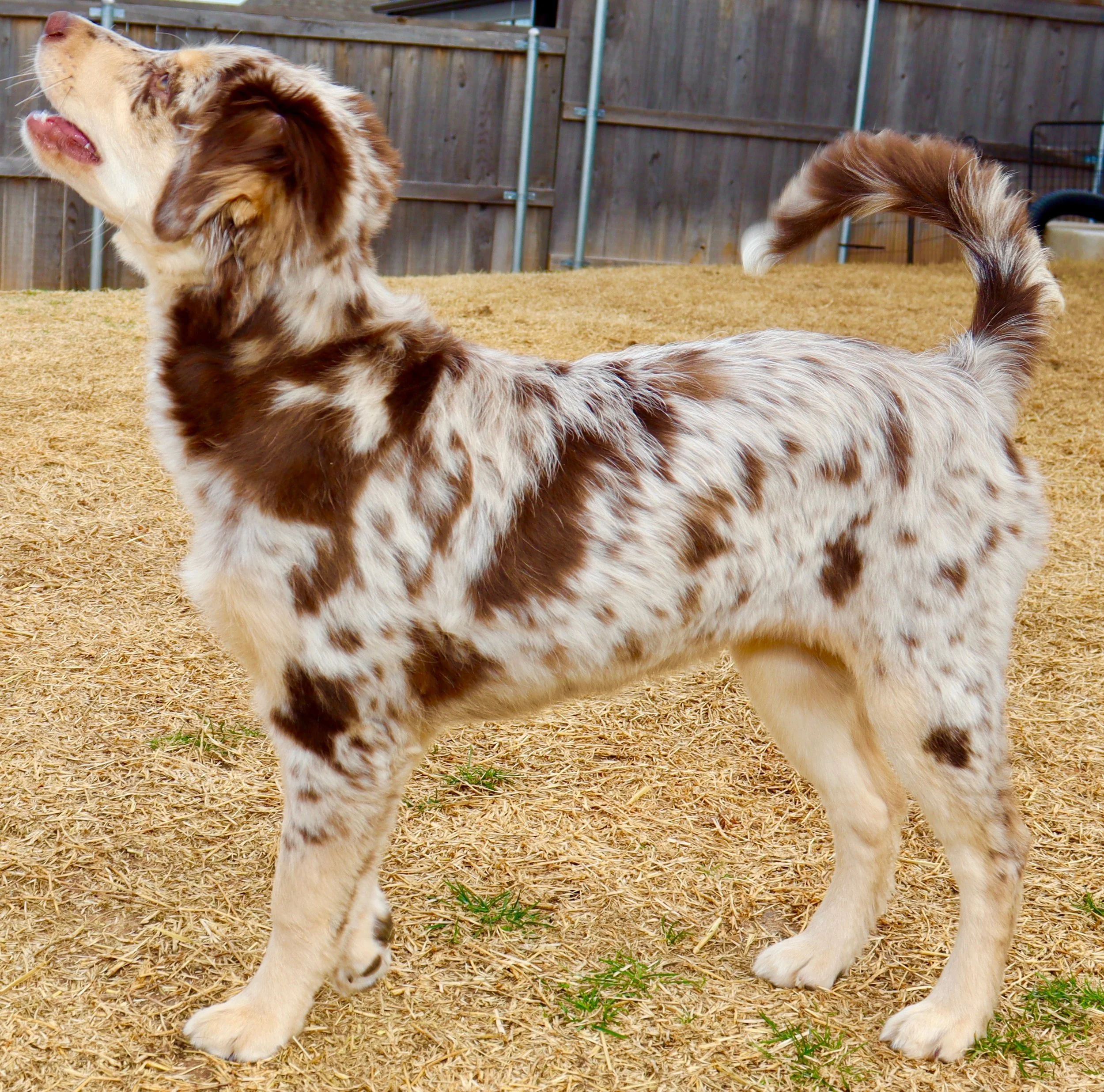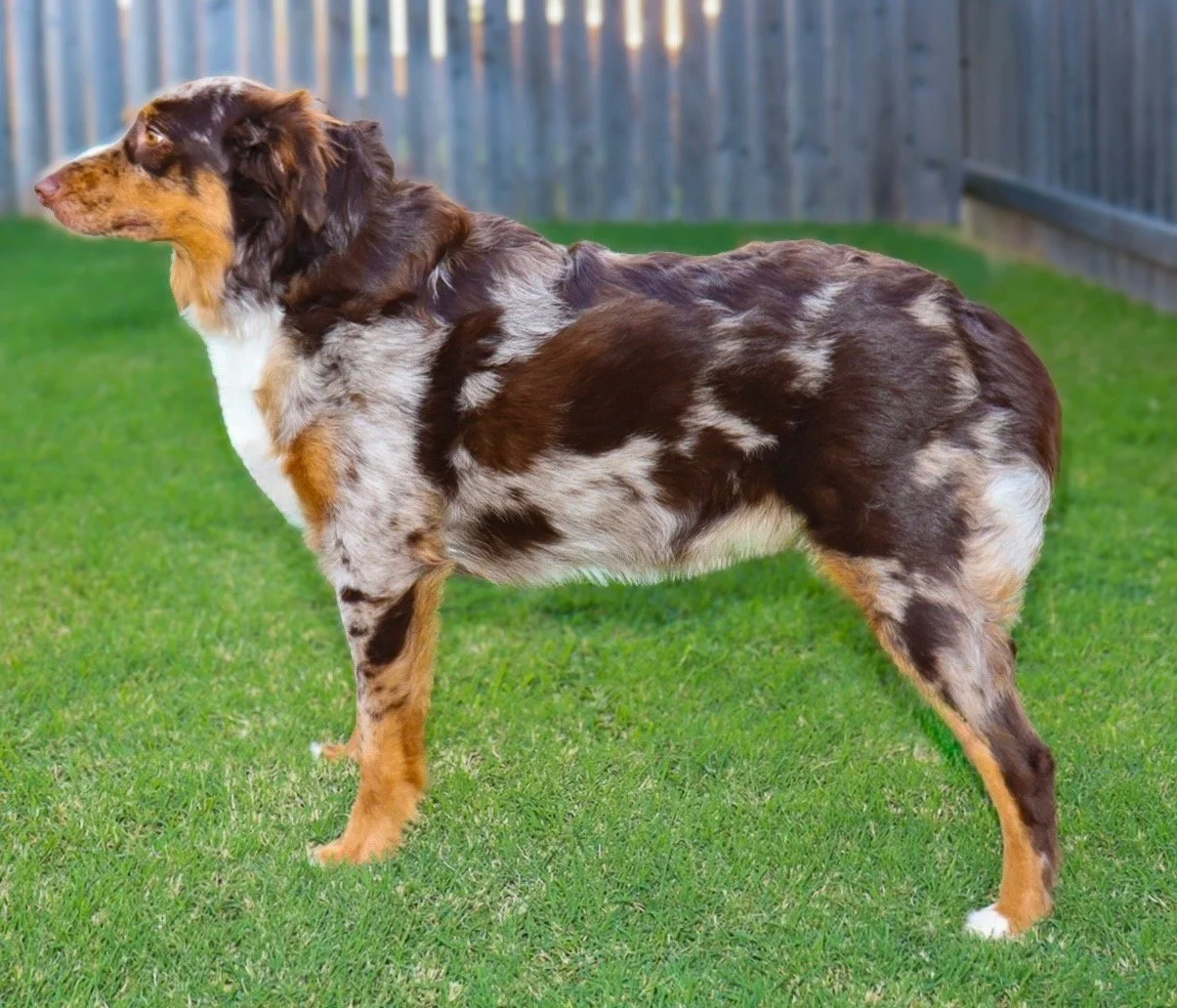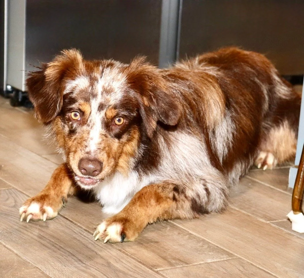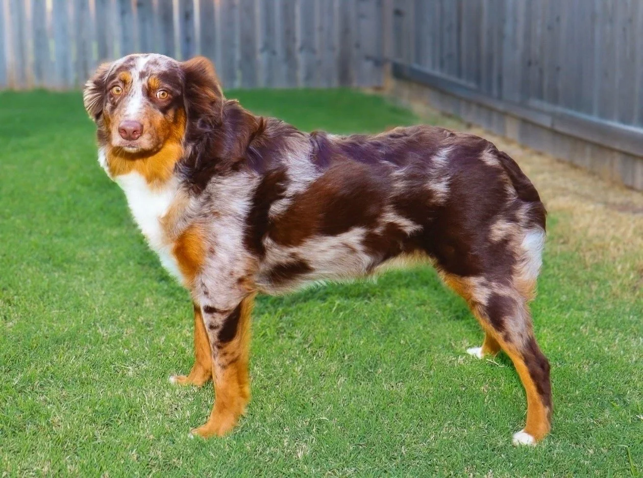 Holland came to us from R&T Aussies, out of fully health tested, clear parents, and my gosh are they beautiful. We’re excited to have her as part of our program, with plans to pair her with a perfect balanced stud in the future — combining their incredible temperament, structure, and pedigree into beautiful puppies with big potential.