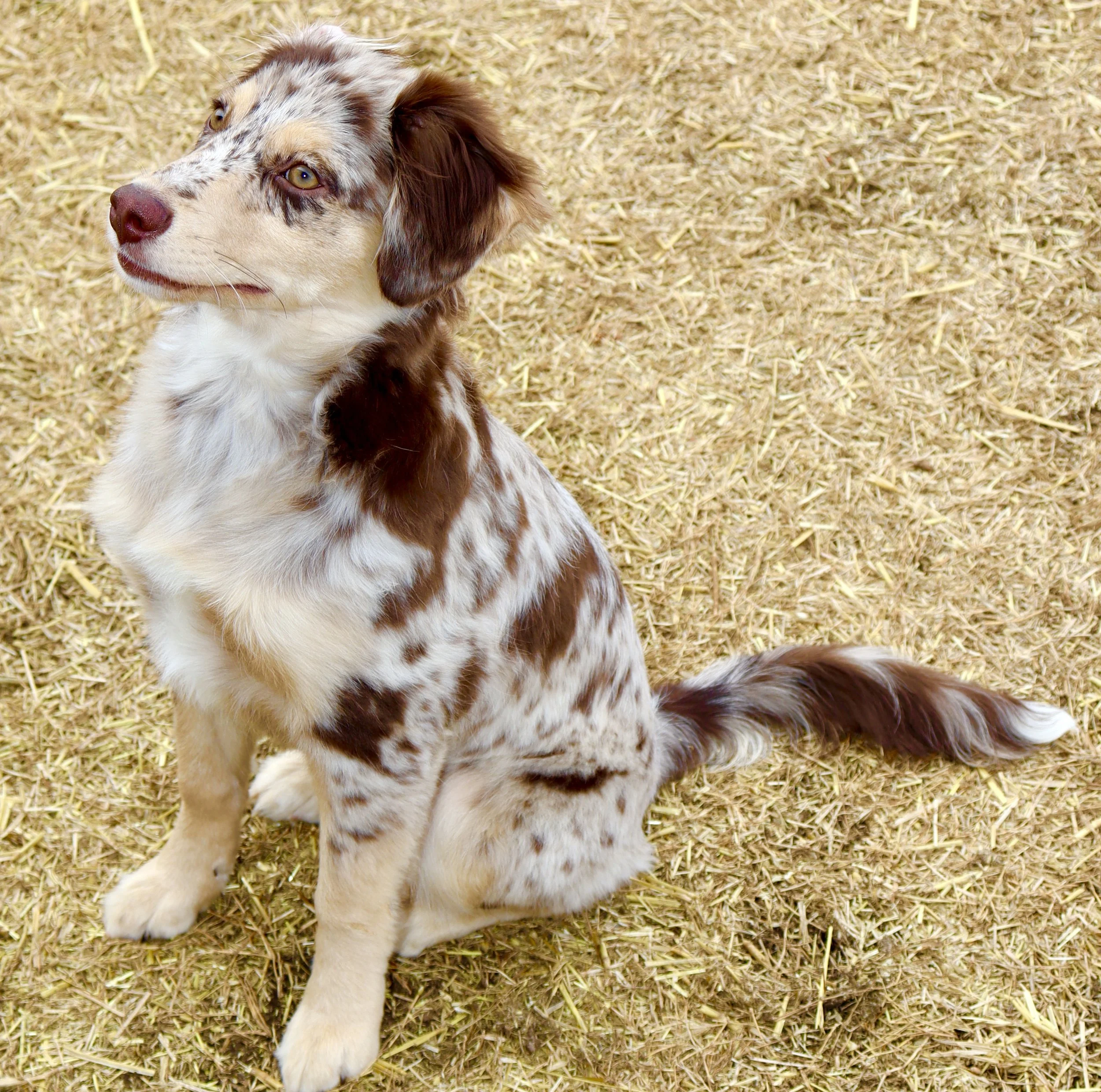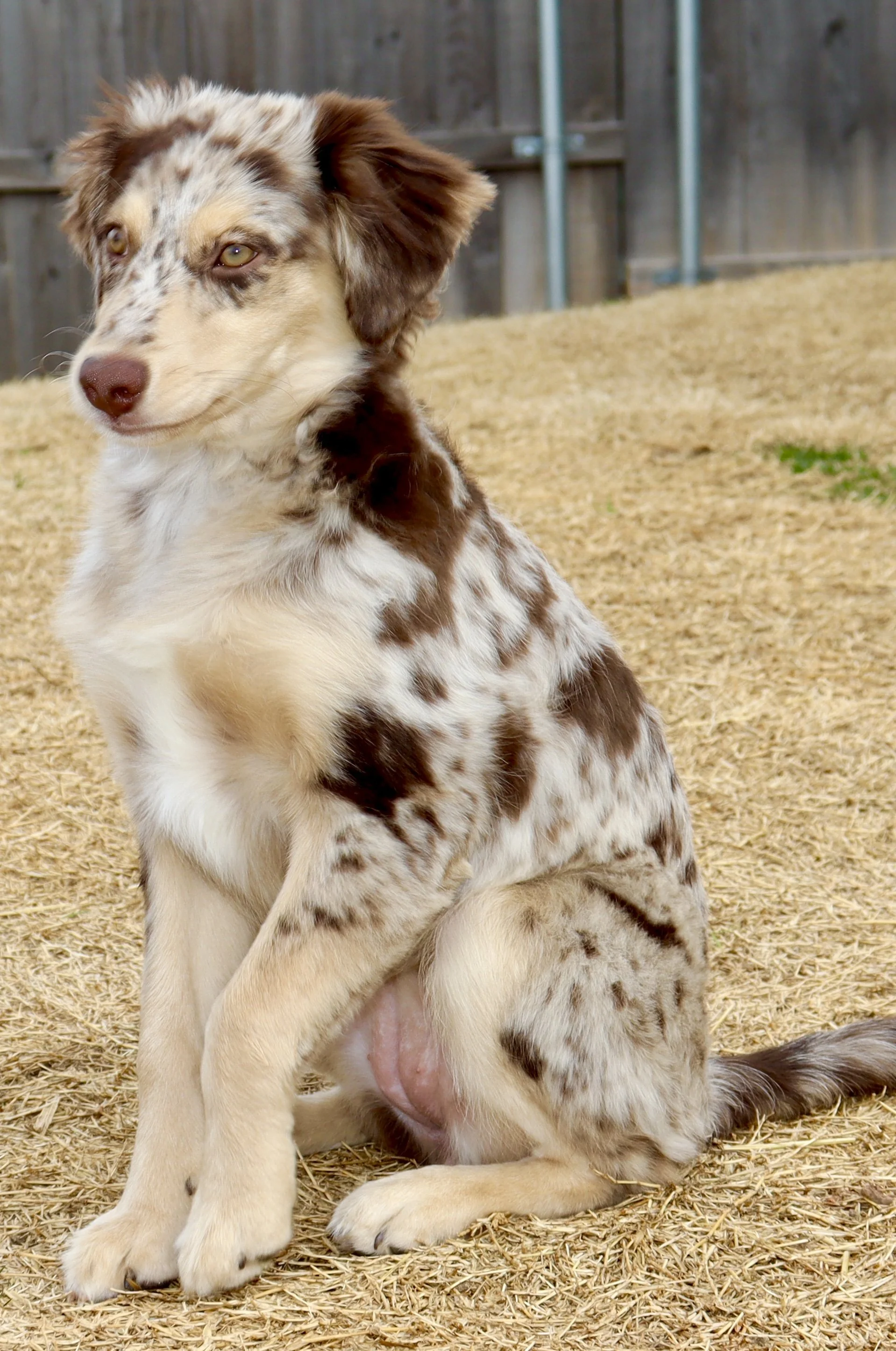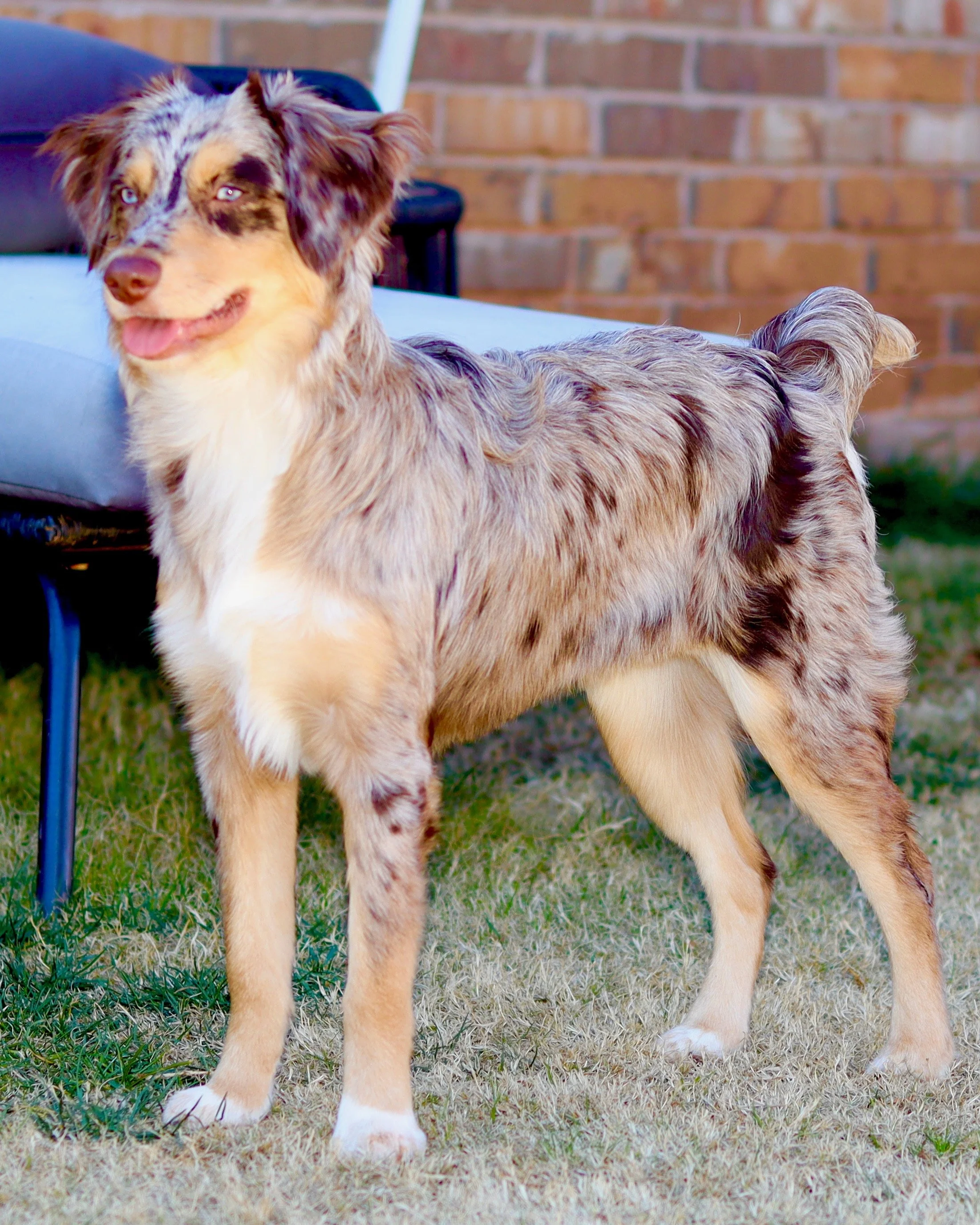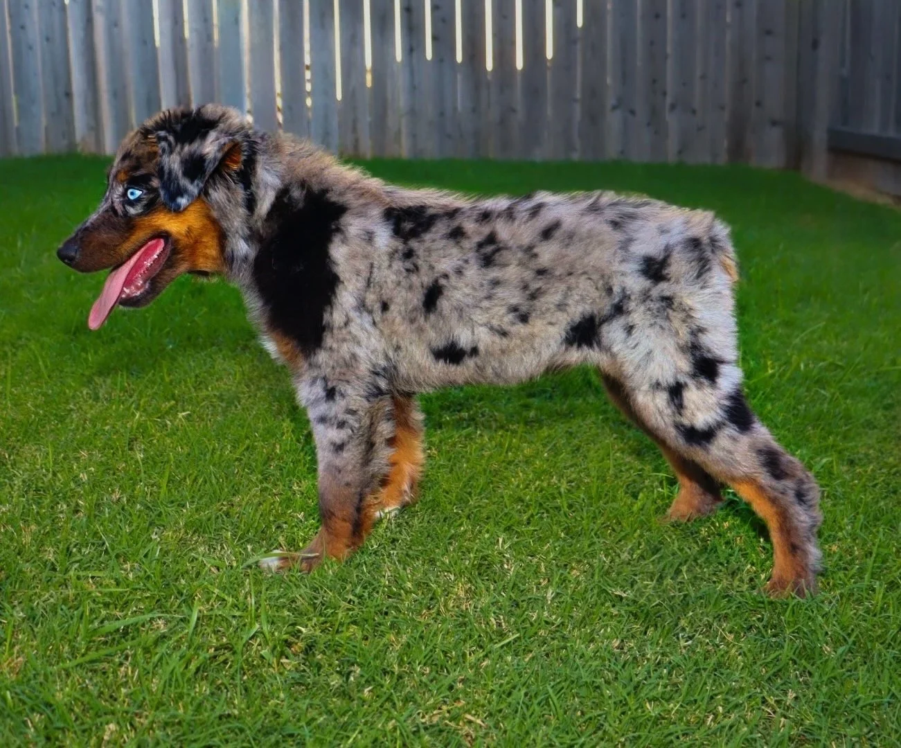 Holland came to us from R&T Aussies, out of fully health tested, clear parents, and my gosh are they beautiful. We’re excited to have her as part of our program, with plans to pair her with a perfect balanced stud in the future — combining their incredible temperament, structure, and pedigree into beautiful puppies with big potential.