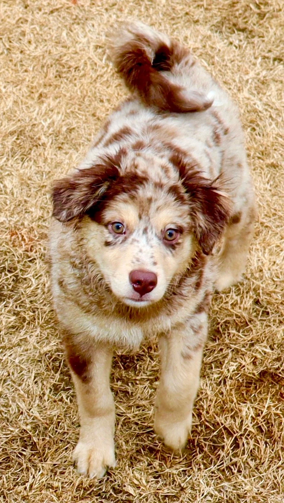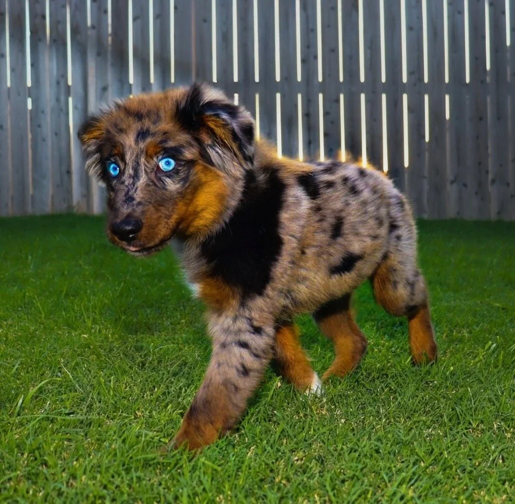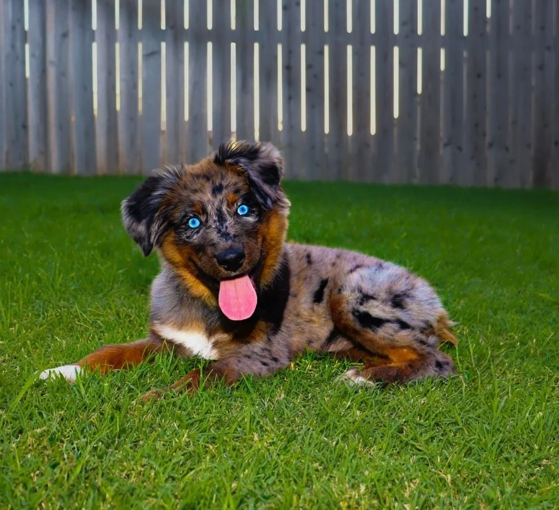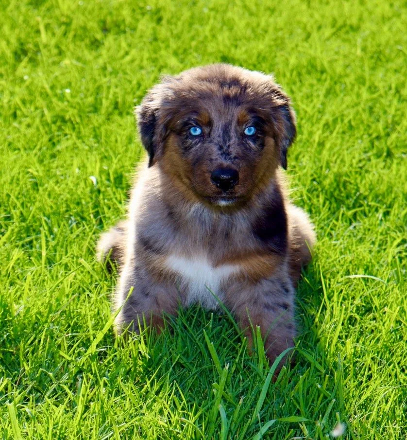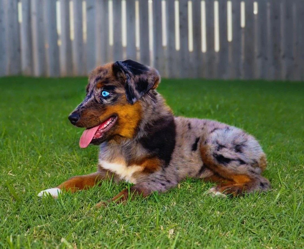 She came to us from Lindsey’s Aussies in Southern Oklahoma, and we’re so proud to carry on the quality they’ve worked so hard to build. We expect her to come into season soon, so we won’t have to wait too long to meet her beautiful babies — and we are beyond excited to see what she brings to the future of our program. We have high hopes for Gracie as a future mama and are excited to pair her with the right stud to continue producing well-balanced, healthy, intelligent, gorgeous Mini Aussies. 🥰