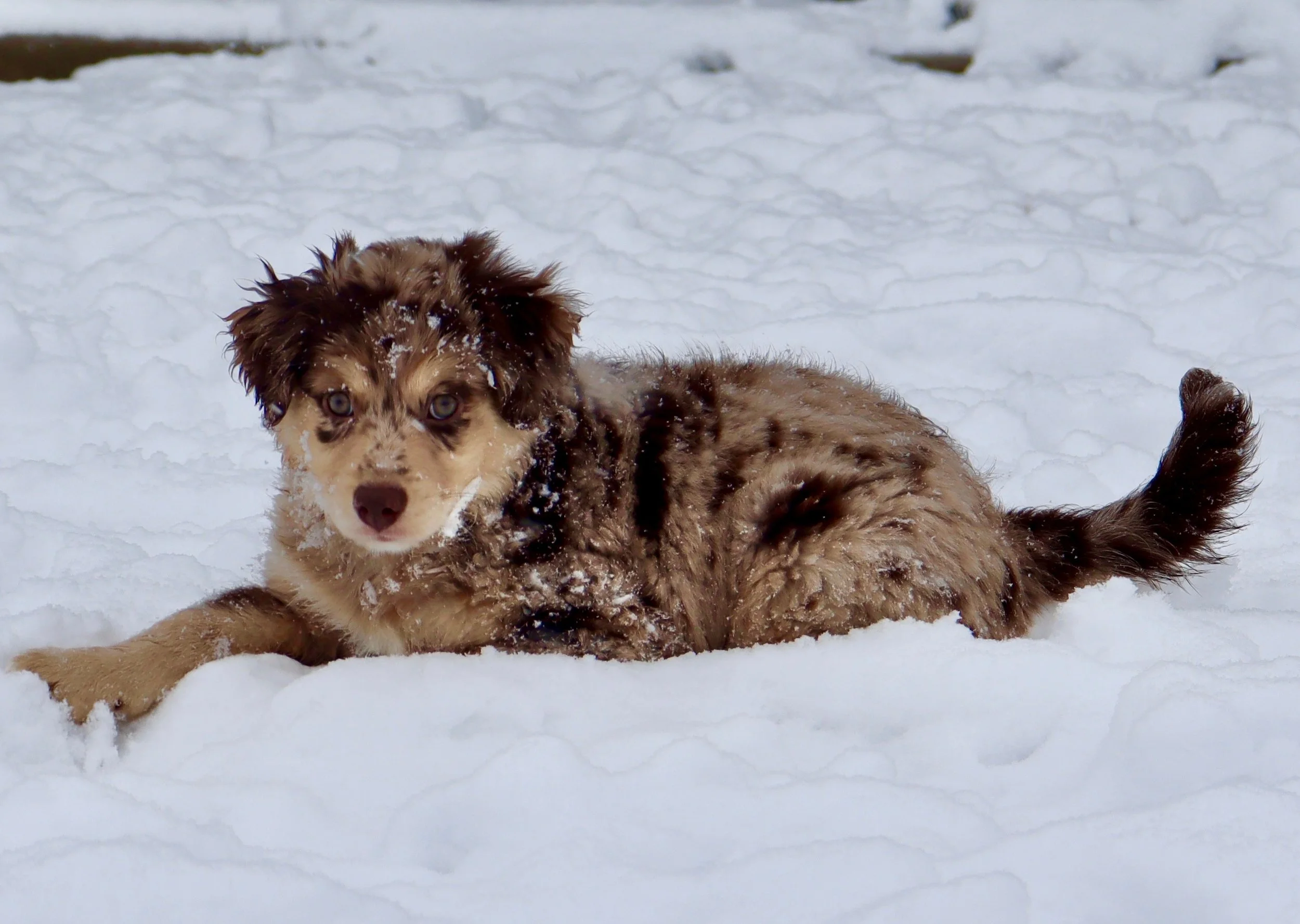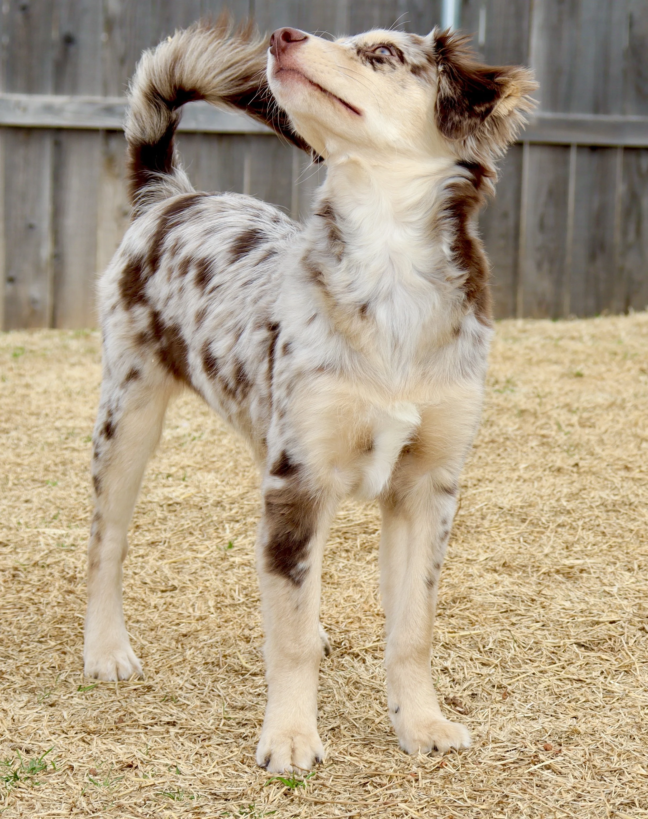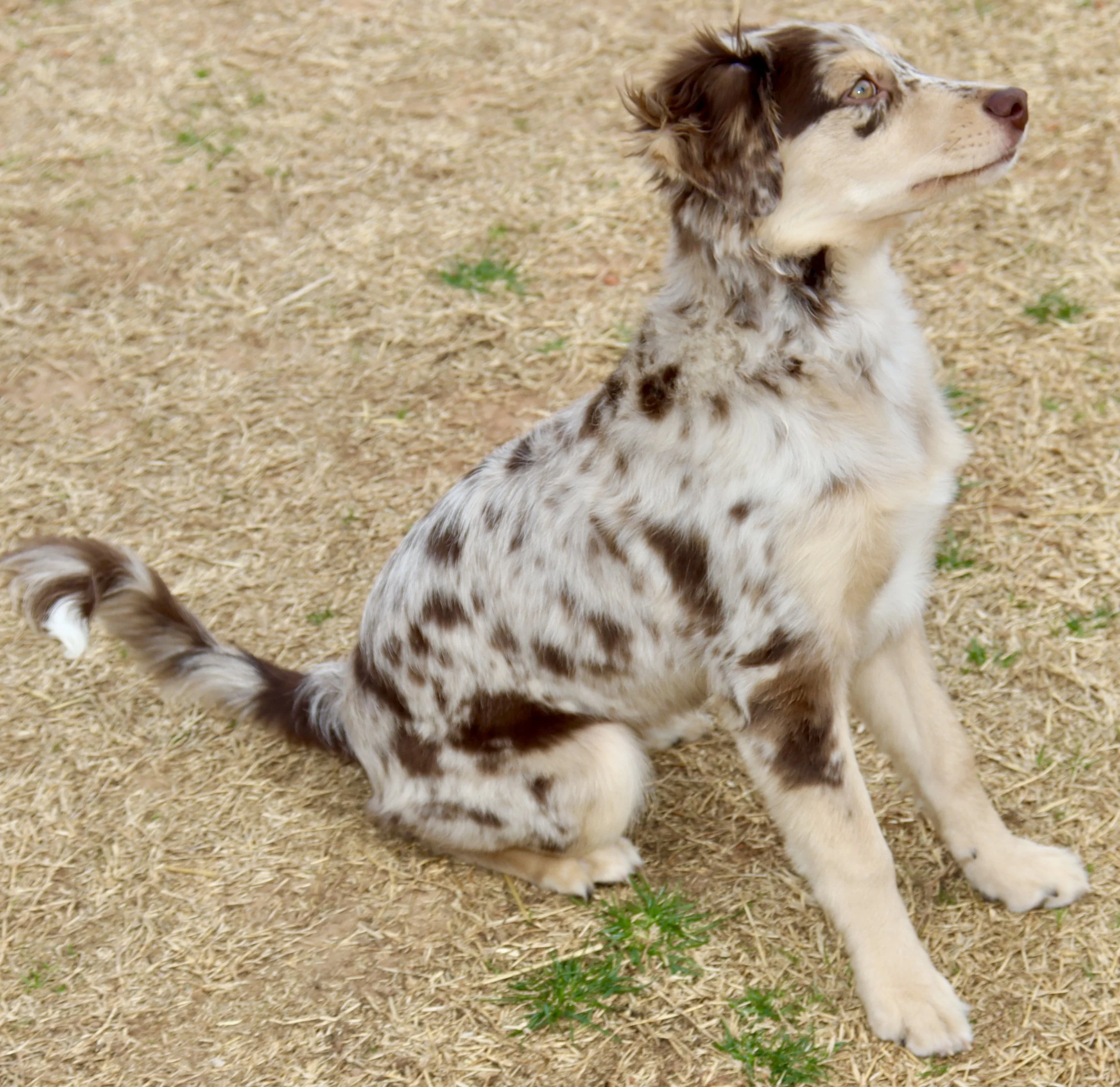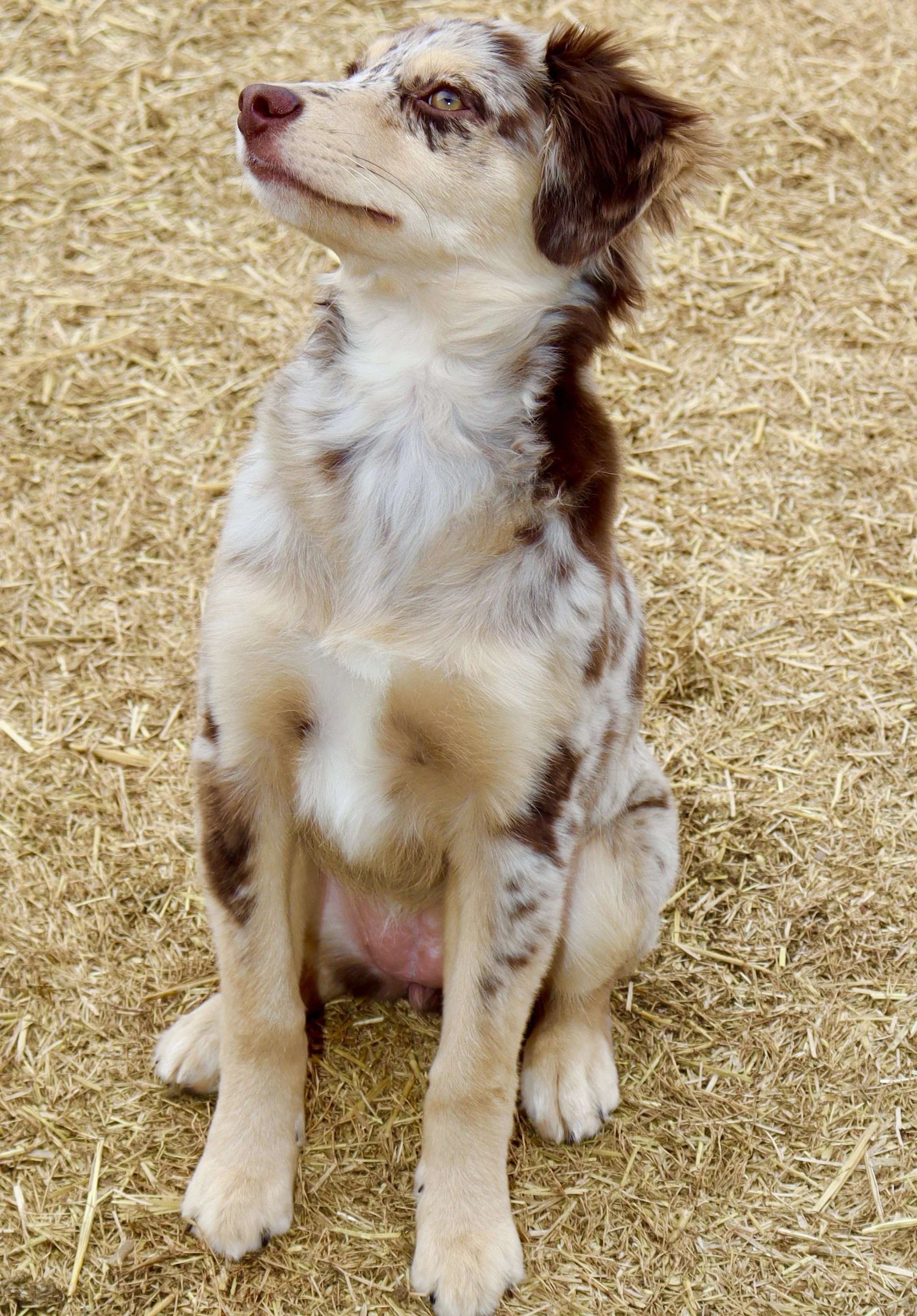 She came to us from Lindsey’s Aussies in Southern Oklahoma, and we’re so proud to carry on the quality they’ve worked so hard to build. We expect her to come into season soon, so we won’t have to wait too long to meet her beautiful babies — and we are beyond excited to see what she brings to the future of our program. We have high hopes for Gracie as a future mama and are excited to pair her with the right stud to continue producing well-balanced, healthy, intelligent, gorgeous Mini Aussies. 🥰