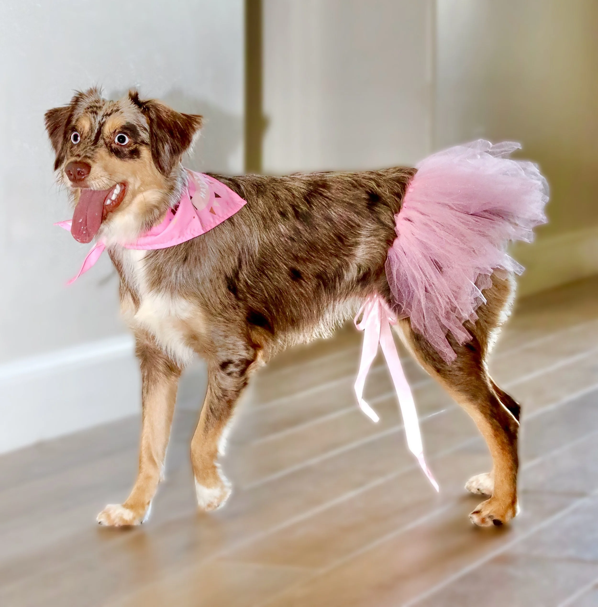 Although she has never barked, Paris always finds ways to communicate exactly what she wants, just like her mama. She uses her paws like little hands, her expressive tail, and that bright, happy energy to make her point. As our homegrown girl, she has been pure joy from the start, always radiating happiness no matter the day.