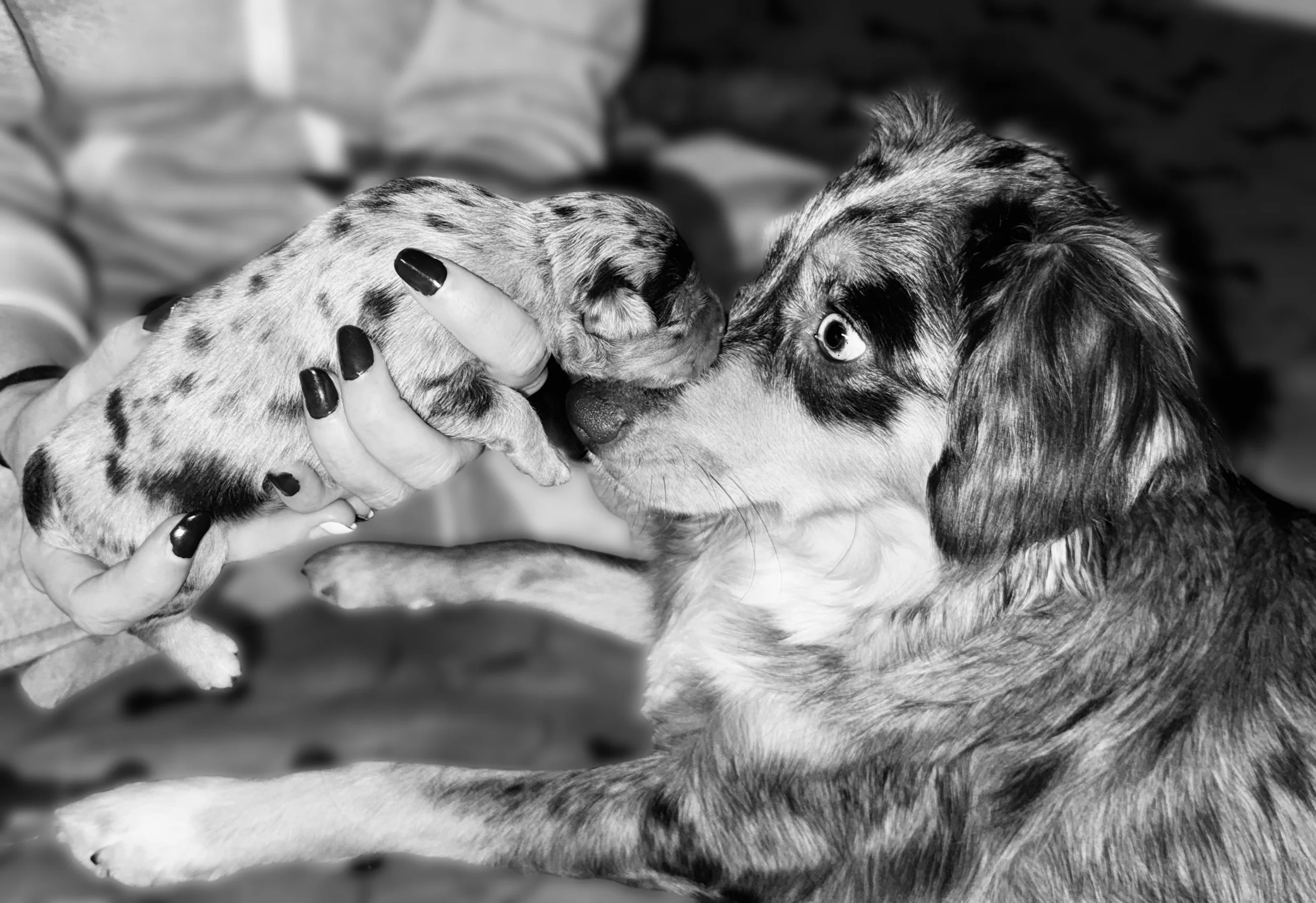 She will always be the heart of our home, the one who set the standard for the kind of temperament we strive to produce. We’re endlessly proud to share her remarkable legacy with families who value Alaïa’s beauty, brains, and devotion that make her Mini Aussie babies so special.